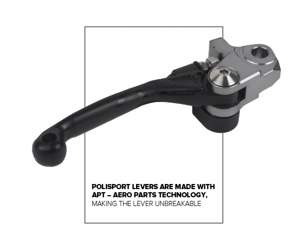 Polisport rilascia una nuova gamma di leve innovative, con sistema pivot e realizzate con APT - Aero Parts Technology. L'APT è un composto proprietario che emula la sensazione e il tocco delle leve in alluminio, che i piloti amano e a cui sono abituati, rendendo la leva infrangibile e con qualsiasi flessione durante l'uso.
